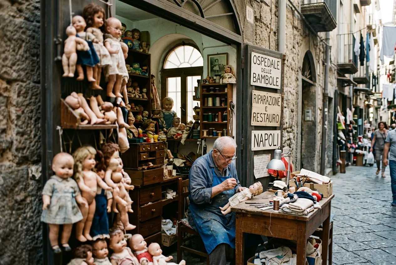 In Via San Biagio dei Librai, nel cuore di Spaccanapoli, una bottega artigiana restaura bambole rotte da oltre un secolo. Le teste di porcellana, i corpi in celluloide, gli occhi di vetro attendono su scaffali ordinati come pazienti in lista d'attesa. Non è un museo, né uno spazio commerciale: è un laboratorio vivo dove tecniche di restauro tramandate da tre generazioni convivono con un silenzio che contrasta con il caos della strada fuori.