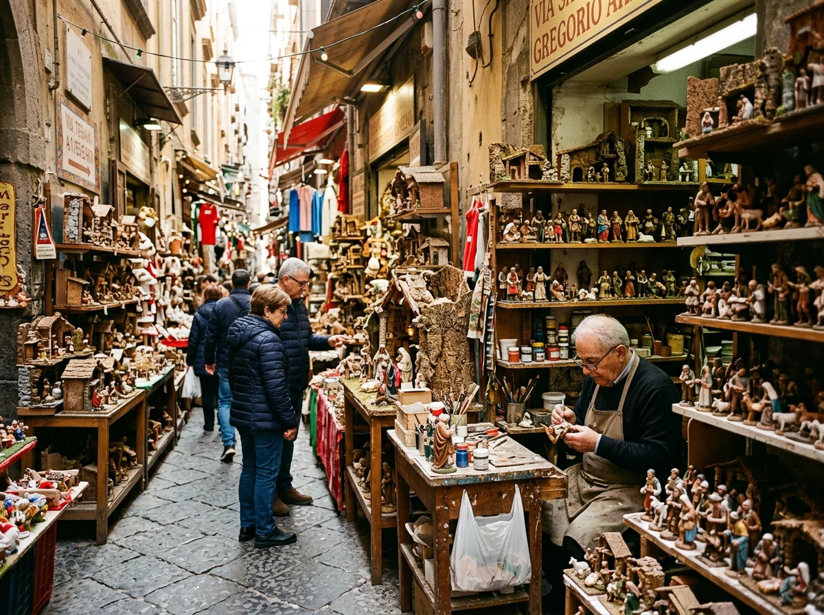 Passeggiata per Spaccanapoli scoprendo presepi e negozi strani (divertente per bambini che amano esplorare)